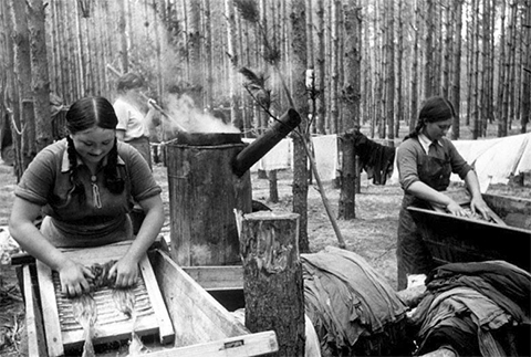 Общий вид полковой прачечной в лесу западнее Львова. Фото из фондов РГАКФД