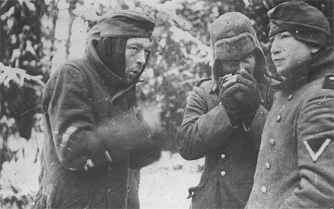 Бойцы старшего лейтенанта Калинина одеваются после бани. Фото из фондов РГАКФД