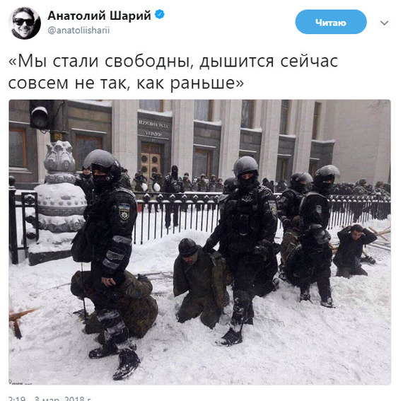 https://sharij.net/ukraina-vydvinula-trebovaniya-k-mirotvorc...Что-то "укро-нерабы и вытираныАТО" не особо возмущались когда их крутили в марте 2018 хлопцы Арсена Авакова из евро-МВД (то не Беркут Яныка) Арсенка крутит нерабов.