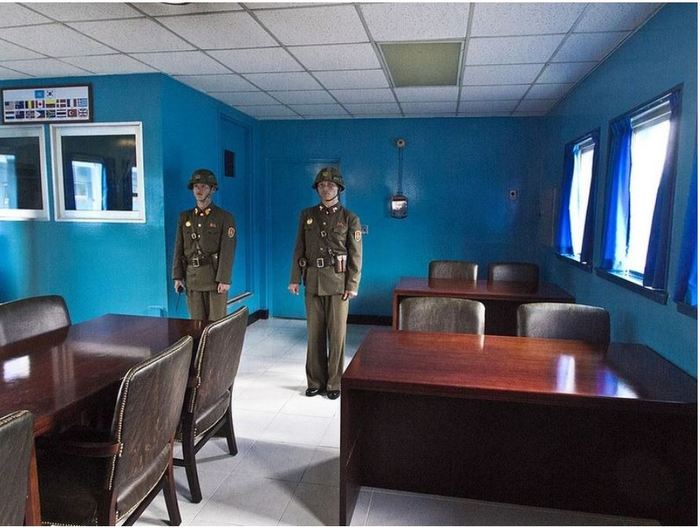 Одна из главных достопримечательностей в Пханмунджом — посещение зеленовато-голубого одноэтажного здания, где чиновники от этих двух сторон иногда встречаются. Стол переговоров, крытый зеленым бархатом, помещен непосредственно по границе, а кабель микрофона, который бежит по середине стола, официально признан международной границей. Когда туристы сопровождаются в здание, четыре солдата от ООН стоят с обоих концов здания, охраняющего экскурсантов, в то время как северокорейские солдаты наблюдают за ними через окно. Туристов просят не устанавливать с ними зрительный контакт, и не делать жесты любого вида, которые могли бы провоцировать северокорейских охранников. Нужно также следить за дресс кодом, синие джинсы, шорты или любая другая провокационная одежда не позволены.