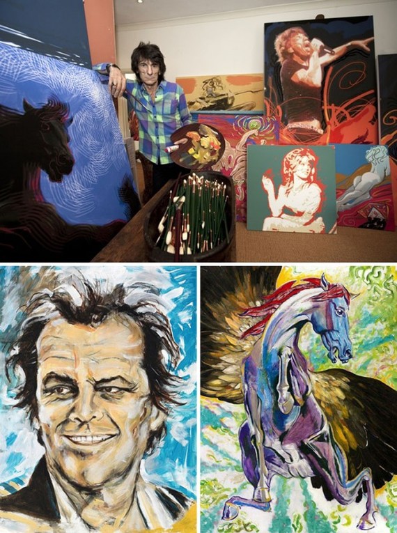 Ронни Вуд - британский музыкант, участник групп The Rolling Stones и The Faces. Живописью Вуд увлекается ничуть не меньше, чем музыкой. Это вполне объяснимо. Его отец был музыкантом, а два старших брата - талантливыми художниками. С 80-х годов он пишет и продает (с переменным успехом) картины. Излюбленный сюжет Ронни - это сценические портреты друзей-музыкантов.