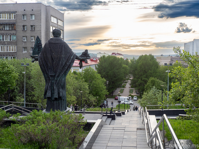 Мурманск — самый ХХХ за Полярным кругом. Где ХХХ — куча разных эпитетов вида «крупный областной центр» и т.п. Город довольно молодой для европейской части России, основан в 1916 году как незамерзающий северный порт, альтернативный Архангельску. Так что в нём, считай, нет исторической застройки, а турист сюда ездит за северной природой. Хотя лично я люблю и по самим городам походить.