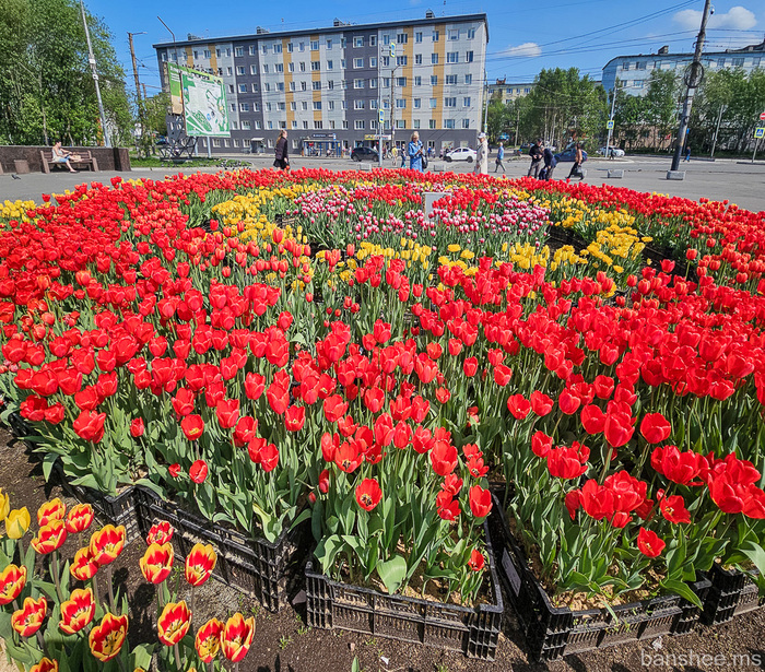 Климат, похоже, не позволяет выращивать цветы на клумбах — потому их выставляют в ящиках.