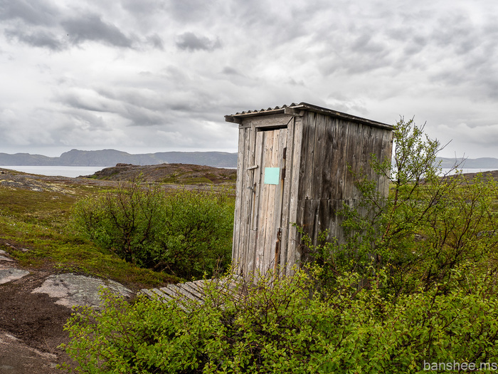 В Териберке снимали не один фильм, потому местами стоят остатки декораций, как пример — эта котельная. Раньше рядом с ней стояла ещё избушка, но недавно её разобрали. От какого фильма осталось — не скажу.