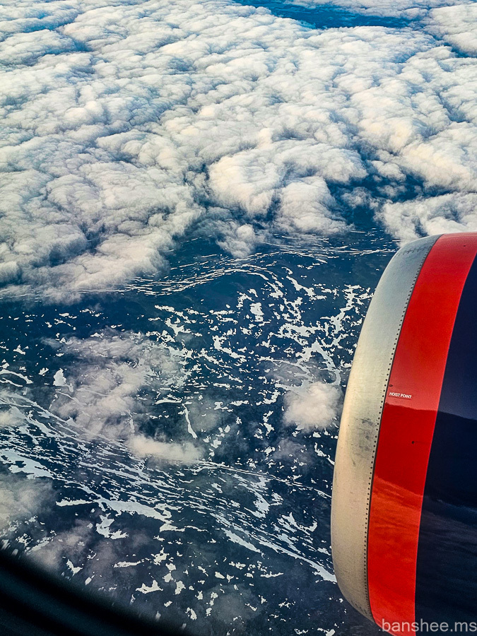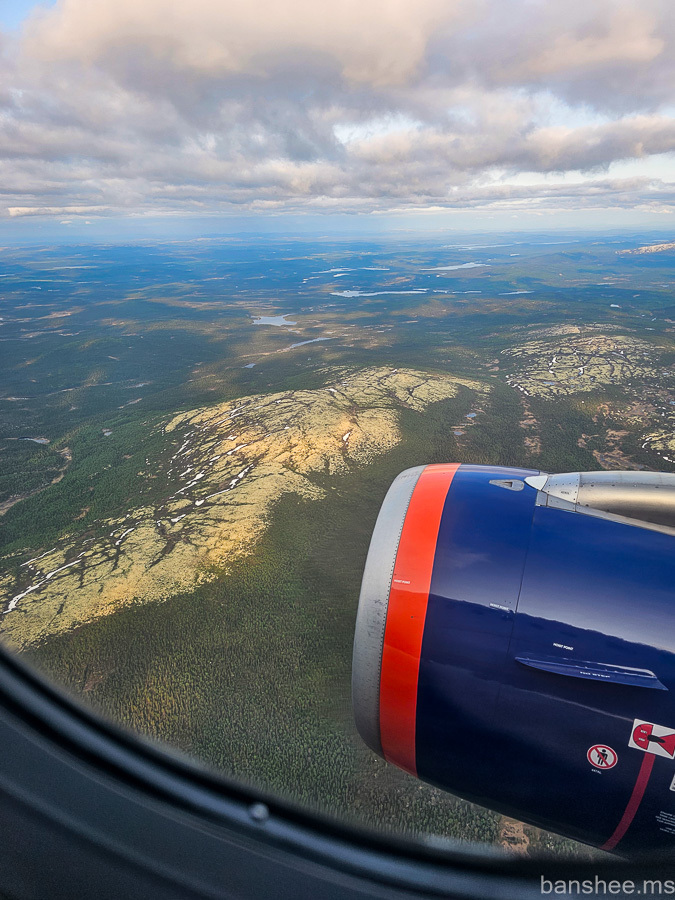 На подлёте к Мурманску погода была неплохая, можно было любоваться на землю, горы и облака.