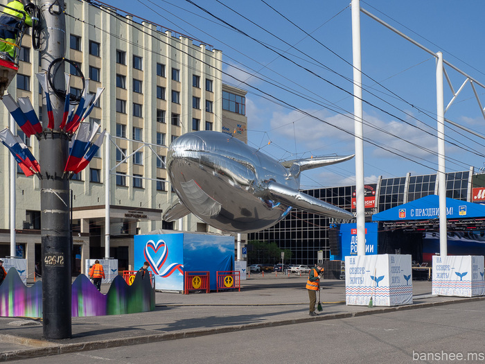Впрочем, небольшой кусочек площади был свободен и там надували кита, готовясь к 12 июня.
