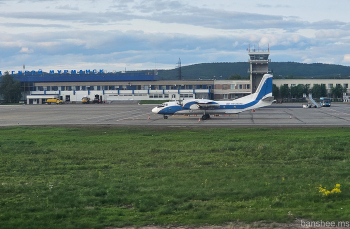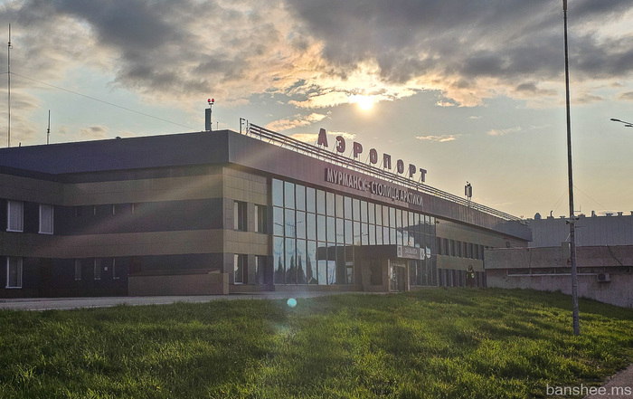 Аэропорт Мурманска находится достаточно далеко от города, но на горизонте при подлёте город можно было рассмотреть.