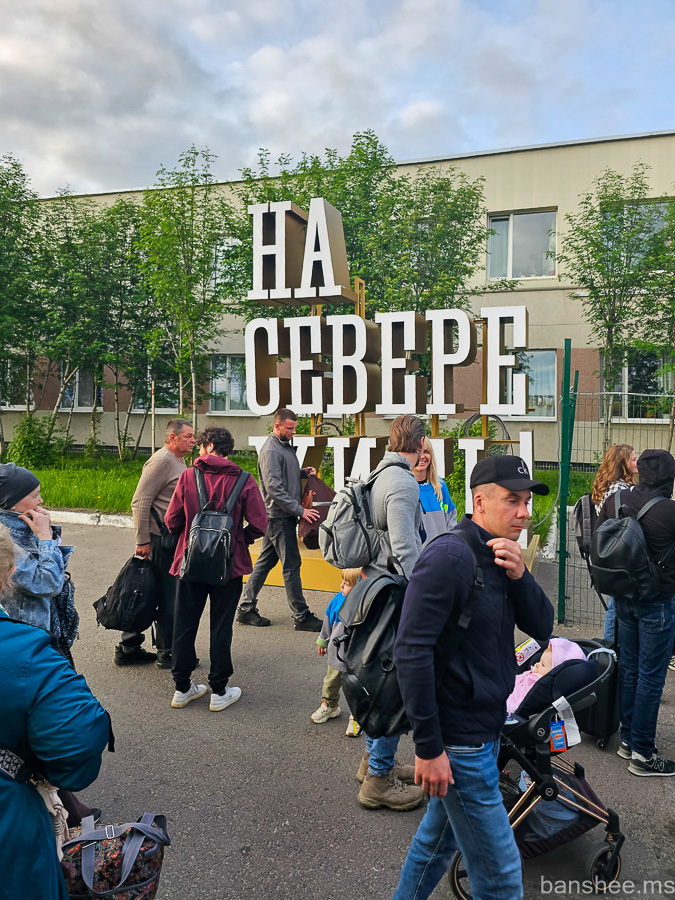 Проехали сотню метров и высадились у надписи «На севере жить». Это местный слоган, который в Мурманске очень часто встречается.