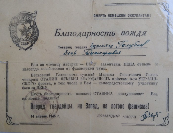 Война закончилась для Егора Тимофеевича в Австрии, взятием Вены.