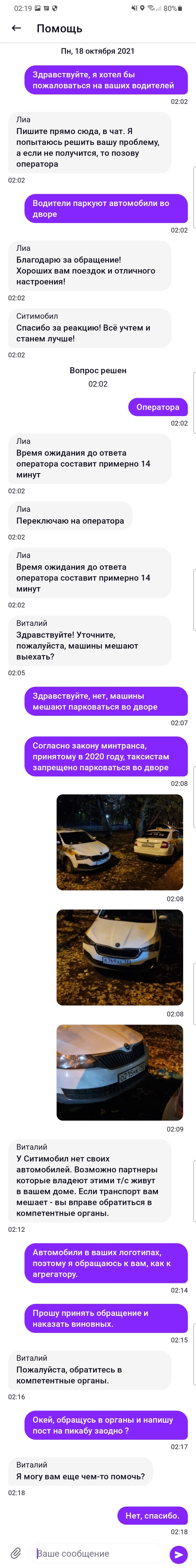 Двор у нас узкий и тупиковый, парковочных мест крайне мало, так еще и таксисты повадились парковаться на ночь во дворе, хотя это запрещено. Решил попробовать пожаловаться в агрегаторы. Может быть яндекс и не примет никаких мер, но хотя бы в ответе они тебя скрыто не посылают в пешее эротическое...