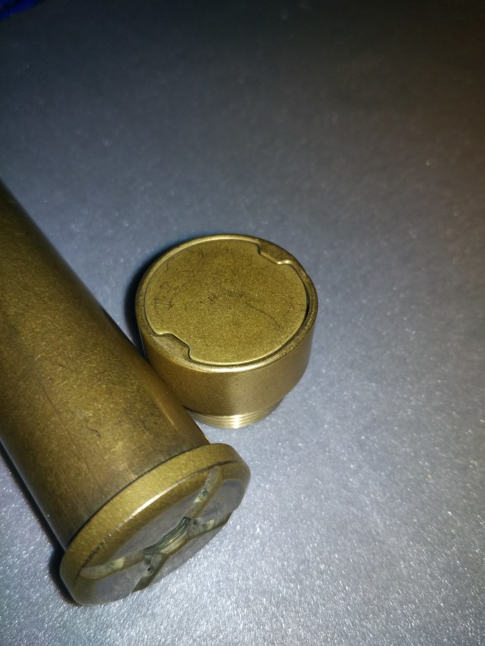 al13nfx Что это такое? 6 лет назад Нашёл на в лесу, где у Илюхи днюха обычно, длина 9 см. Похожа на латунную. На верху нажимающаяся кнопка. Показать полностью 4 Штука Что это? Длиннопост