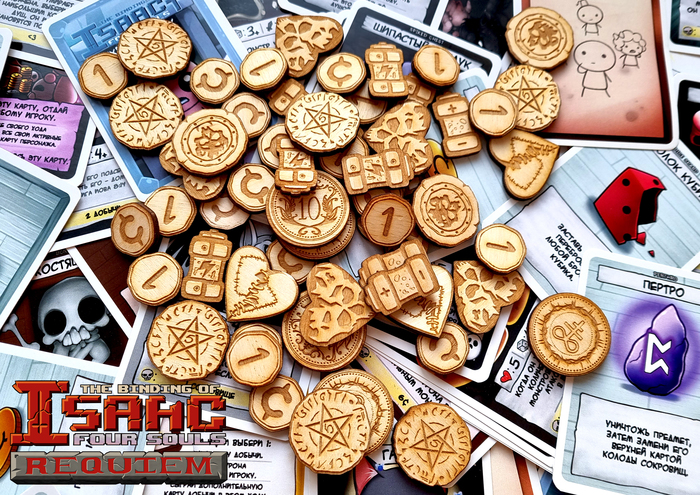 Для комфортной игры постоянно требуются Жетоны, а с введением карт Tapeworm еще и Жетоны-яйца, для подсчета жизней так же необходимы жетоны Сердец. А так же сумма в 100 Центов в виде Монеток.