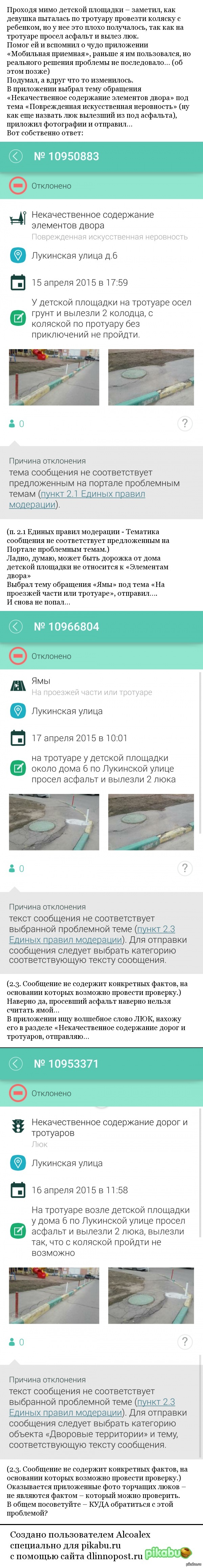 10 alcoalex 10 лет назад Приложение «Мобильная приемная» Попытался через официальное мобильное приложение «сообщить о проблемах городской инфраструктуры и получить официальный ответ» Показать полностью 1 [моё] Москва Приложение Длиннопост