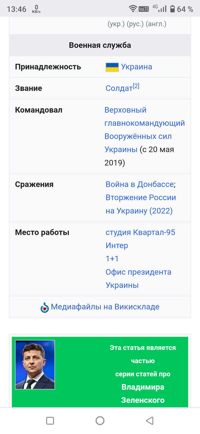 Дед — Семён Иванович Зеленский (1924, Кривой Рог — ?), украинец[30], участник Великой Отечественной войны. В годы войны — командир миномётного взвода, затем — командир стрелковой роты 174-го гвардейского стрелкового полка 57-й гвардейской стрелковой дивизии. В 1944 году награждён двумя орденами Красной Звезды, войну закончил в звании гвардии лейтенанта[31][32][33][34].