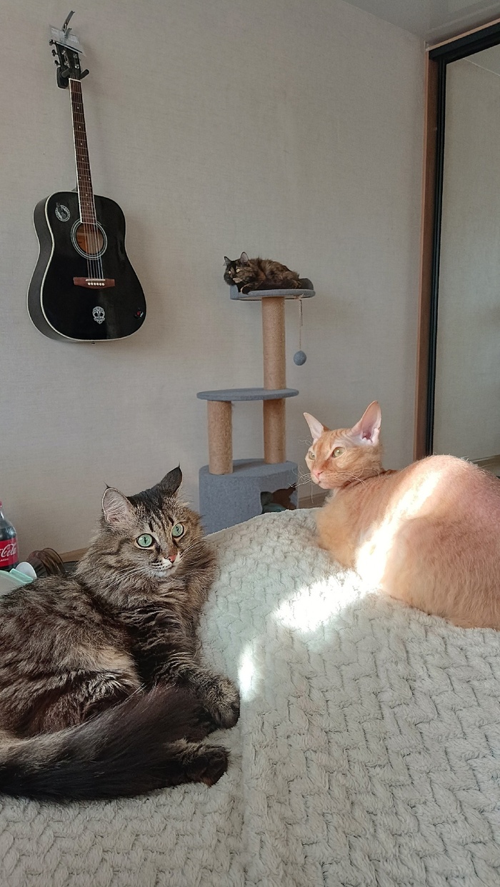 Купили когтеточку повыше с тремя полками, теперь есть подставка для хранения каждой кошки отдельно) дружба в стае укрепилась, вряд ли кошки помнят, что когда-то жили не втроём. Ночных тыгыдыков не осталось вообще. По чисто бытовым и комфортным ощущениям жизнь с тремя кошками на данный момент ощущается абсолютно так же, как с одной.