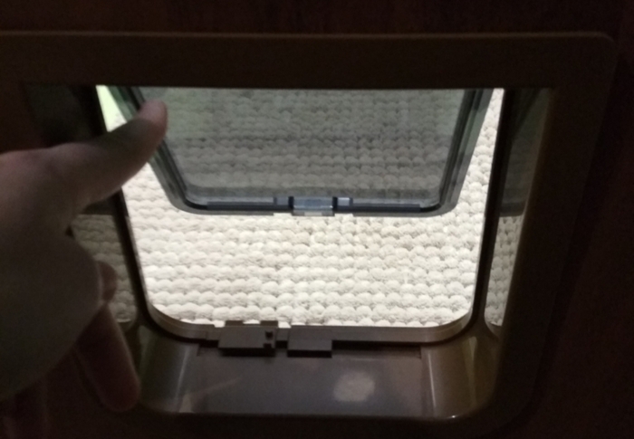 Вот это вообще спасение, потому что постоянно держать дверь в ванную открытой было крайне неудобно, пойдешь мыться - обязательно кому-то из шерстяных нужно в лоток (или просто последить, чтобы хозяин идиот не утонул ) и они начинают скрестись в дверь, которая от этого тоже страдала. Заказали дверцу, молодой человек ее врезал в дверь, кошки за пару дней привыкли и жизнь стала ещё счастливее.