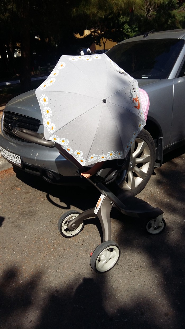 Коляску мы себе выбирали долго и упорно. Выбор пал на Stokke, но так как я не дочка Абрамовича - то коляску брали с рук. Увы, моя зп не позволяет отдать больше 100 тыс за коляску. Пусть даже и за классную. Купили с кучей всяких разных аксессуаров. Но зонтика к ней не было. А мне вот прямо очень- очень хотелось зонтик к коляске. Да, блажь, понты и каприз. Но хочу и все тут. На Авито только дешёвые и стремненькие. Поэтому мониторила нормальные магазины на предмет скидок. И тут - круто круто - в mothercare фирмовые зонтики Stokke по 2 тыс. Правда не того цвета, который мне нужен. Но пофиг - серый цвет нейтральный, подходит ко всему, берем его. Дело было в марте. Соответственно зонтик кинулся в шкаф и забылся до лета :-) Летом, когда вышло наконец солнышко и можно было понтоваться крутым зонтиком, случился упс :-( После второго раза зонтик просто сломался. Отломался держатель для коляски. То есть фактически зонт можно было выкинуть - использовать его было нельзя :-( Я как порядочная, написала производителю, приложила фото поломки, дату покупки и пр. Знаете что мне ответили? "А не пошли бы вы примерно нафиг". Это если кратко. Если дословно - "Ничем помочь не можем, гарантия прошла, купите новый зонтик".