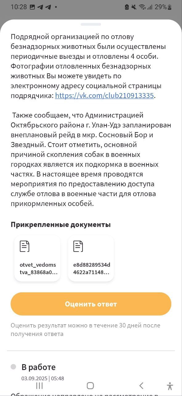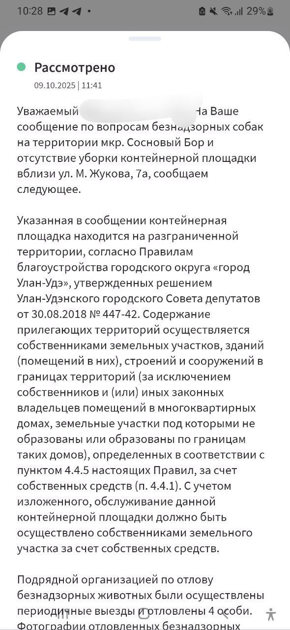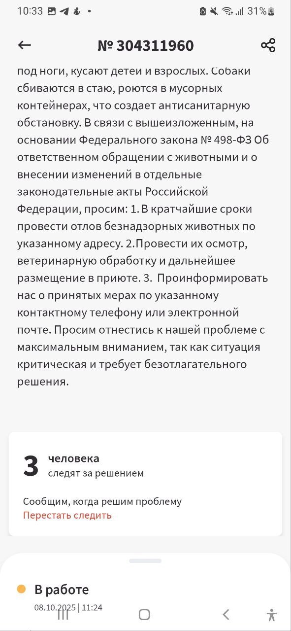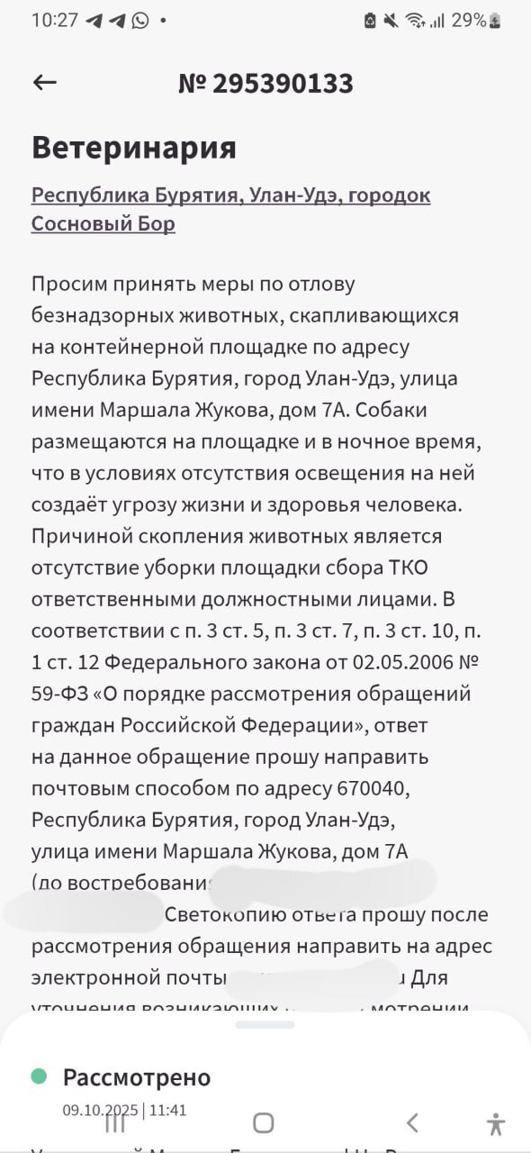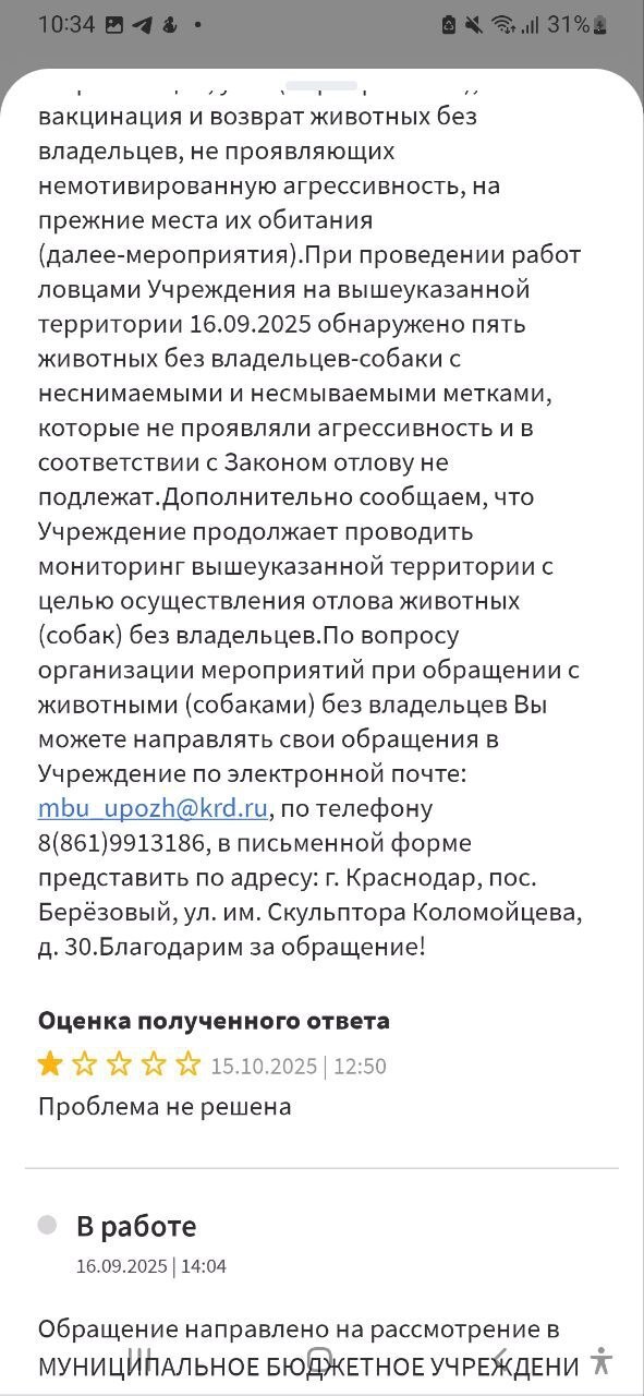 В случае если собаки всё ещё на месте, с копией ответа, полученного в приложении, обращаетесь далее письменно через формы обращений на сайтах: