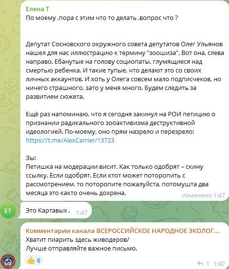 Походу, никто не решит наши проблемы, кроме нас самих. Поэтому хуярьте жалобы, инструкция будет ниже. А если ситуация совсем пиздец, то в аккаунт для связи пишите, будем подсвечивать. Потомушта, может, решат законодательно, а может, не решат. Но стая диких животных будет по дефолту жрать людей, потомушта такова её природа. А значит эти животные должны быть убраны с наших улиц. Возможно, их уберут депутаты, которые их там и расплодили своими законами уебанскими. Но вряд ли. Возможно, их уберут в вашем населенном пункте поперек закона, что я, естественно, осуждаю.