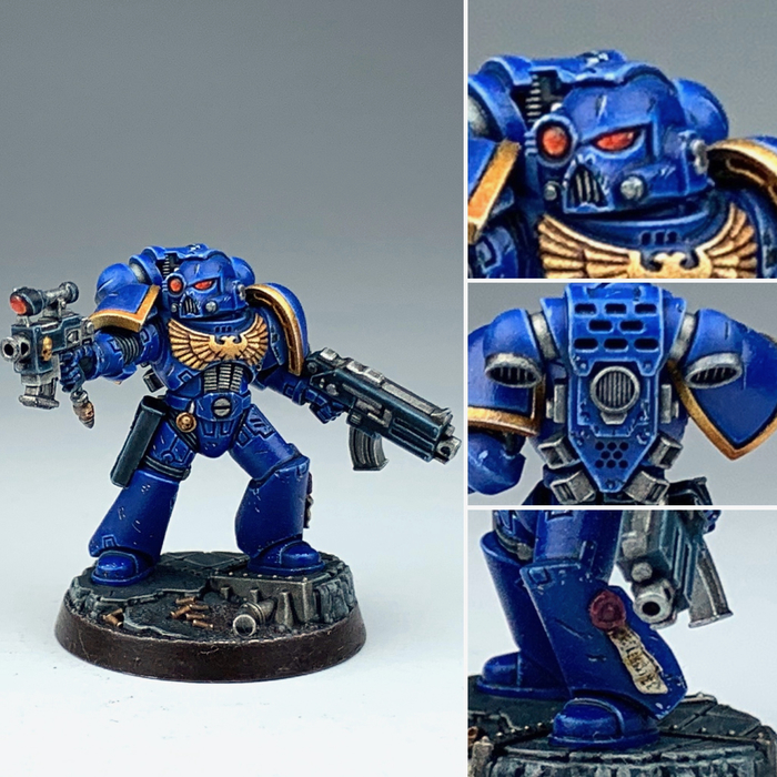 Следующий пост я хочу посвятить еще одному спейсмарину - в той же цветовой схеме, но уже используя больше слоев высветлений. Пока я планирую, что на него у меня уйдет часов 8-10, но уж как получится. А вообще мне было бы интересно реализовать цикл постов по покраске спейсмаринов в разных техниках - и назвать его "Спейсмарин за 4, 8 и 16 часов". Ну и посмотрим, что из этого выйдет)