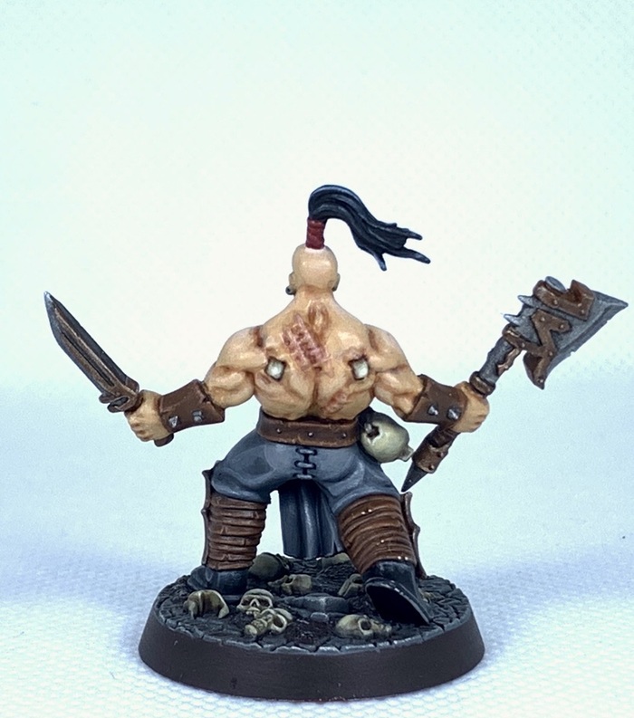 Проба пера в покраске темной кожи. Как и Гаррек, эта миниатюра была покрашена достаточно быстро - сразу хотелось скорее начать ими играть! Однако последующие я все же решил делать более качественно.