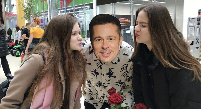 Четверо парней подарили более тысячи роз в честь 8 марта посетительницам ТК АМБАР от имени звезд, а точнее в масках одних из самых популярных мужчин - Брэда Питта, Егора Крида, Нагиева и Брюса Уиллиса. Видео распространилось по соцсетям.