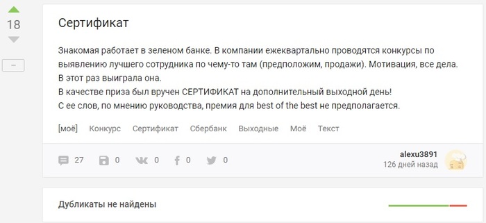Но случился рецидив, еще один мой пост был вынесен за рамки "Историй из жизни". https://pikabu.ru/story/sertifikat_6181152