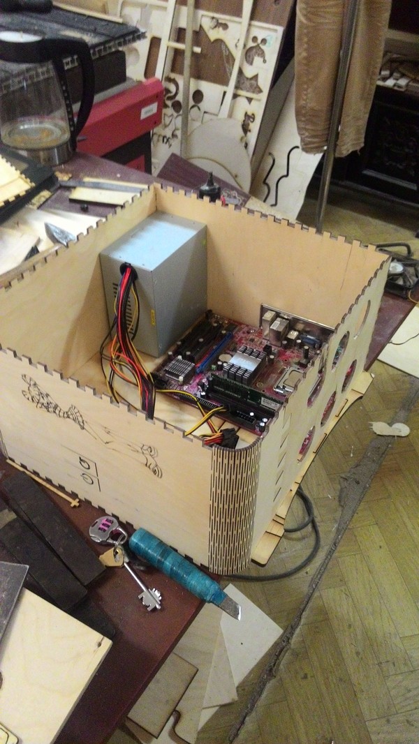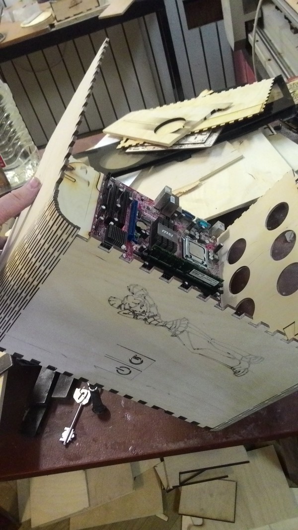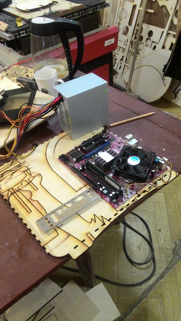 в процессе обдумывания экстерьера и интерьера системника, руки занимали конструкторами) конечно же без инструкций, зачем они нам... А лазер был занят работой)