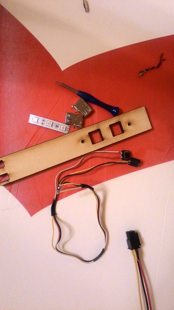 на вырезы сверху хотели посадить разъемы usb, но передумали. с ними еще предстоит повозиться, как и с местом под ssd. далее берем паяльник, руки, кнопки, провода и немного светодиодов (в данном случае они RGB).