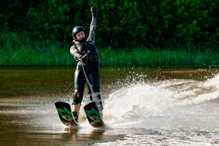 Что чувствуешь в полёте на такой дистанции? Мой личный рекорд 68,5 был установлен в 2017 году и на тот момент являлся Рекордом России. Он был установлен за тем же катером, что и существующий Рекорд Мира. Катер был очень мощный – это играет важную роль в нашей дисциплине. Полет на такую дистанцию продолжается около 2,5-3 секунд. Ощущение полета, счастья, возможность просто лечь на воздух и планировать. Здесь можно добавить, что в хороший сезон спортсмен проводит в воздухе около 30 минут. – это 30 минут свободного полета. Только подумайте – целых 30 минут чистого счастья в год!