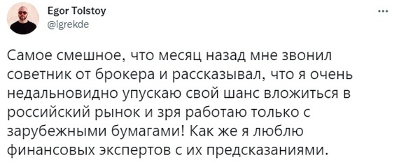4313 aliaksandr87 Юмор для всех и каждого На фоне сегодняшних событий!1 3 года назад Брокер Картинка с текстом Юмор Инвестиции Политика 48 12 12 4 1 Ещё 0