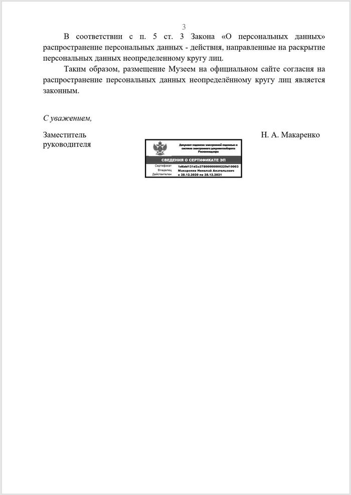 Другими словами, если вы хотите попасть в музей, то оставляете им свои персональные данные включая ФИО, телефон и электронную почту, а они могут делать с ними все, что угодно, хоть выложить в интернет в открытом доступе. А если вам это не нравится то идите мимо.