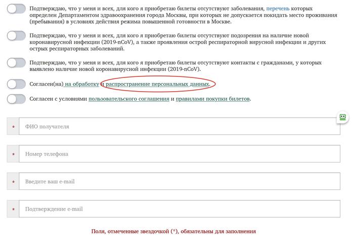 Обычно, прежде чем что то подписать или на что то согласиться я стараюсь внимательно прочитать условия. Читаю условия приобретения билетов и тут у меня знатно пригорает. Одним из условий приобретения билета является согласие на распространение персональных данных (ФИО, телефон, почта) неограниченному кругу лиц.