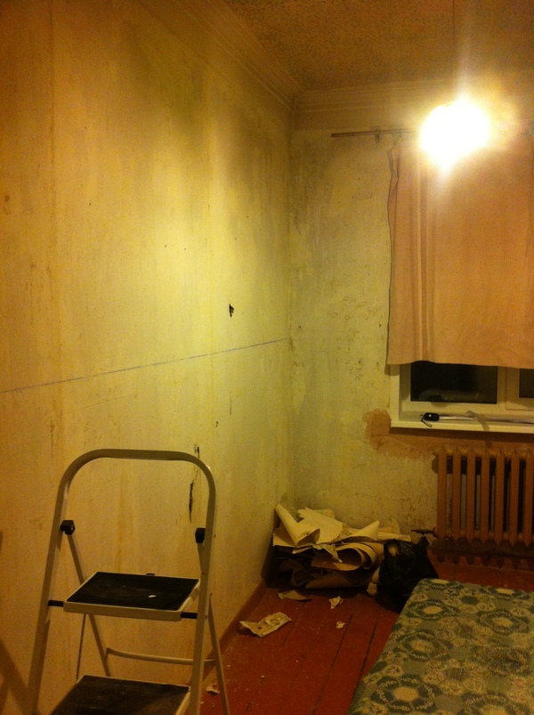 Прошу прощения что фото 'до' это не совсем 'как было', только-только поставлено окно и уже вынесена часть 'мебели'. Под окном конечно были обои, но просто зацените основной посыл - запущено все 'до нельзя'. Последний раз делали ремонт тут в 1998 году, делали его на