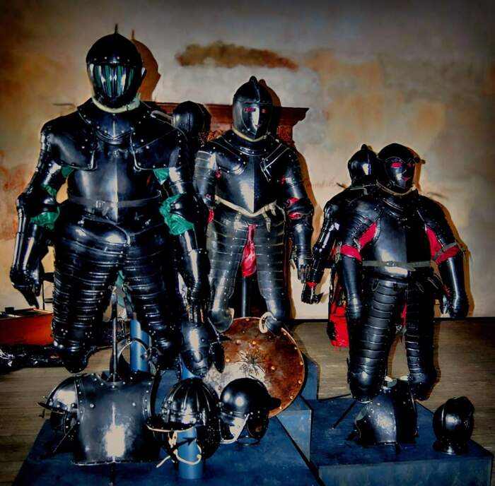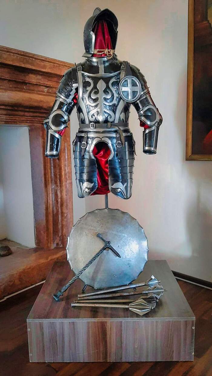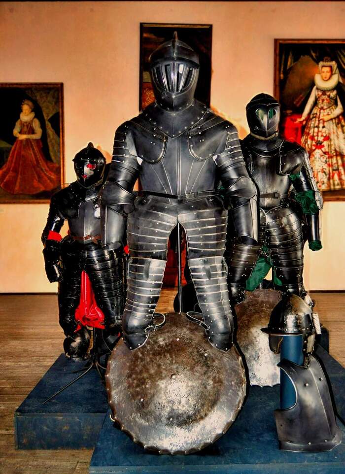 Выставка «Рыцарские доспехи» представляет внушительную коллекцию реплик доспехов времен Тридцатилетней войны 1618-1648 годов, изготовленных Сергеем Августом Нурматовым из коллекции Алены и Сергея Нурматовых. Коллекция доспехов содержит 130 искусно изготовленных предметов, в том числе около десятка тяжелых кирасирских, рейтарских и гусарских доспехов, весом почти по 40 кг каждый, около десятка касок, шлемов и шапок, щитов, нарукавников и специальных боевых конских забрал. Посетители также могут увидеть оружие ближнего боя, в том числе, например. сабли, булавы и булавы, а также более поздние мушкеты. Наибольшая ценность коллекции заключается в том, что реплики изготовлены вручную, в соответствии с искусством профессии оружейника, на основе тщательного анализа строения оригиналов, хранящихся в коллекциях и музеях, а также исторической документации. Многие экспонаты поражают своей конструкцией и вызывают восхищение способом изготовления, точностью и декором.