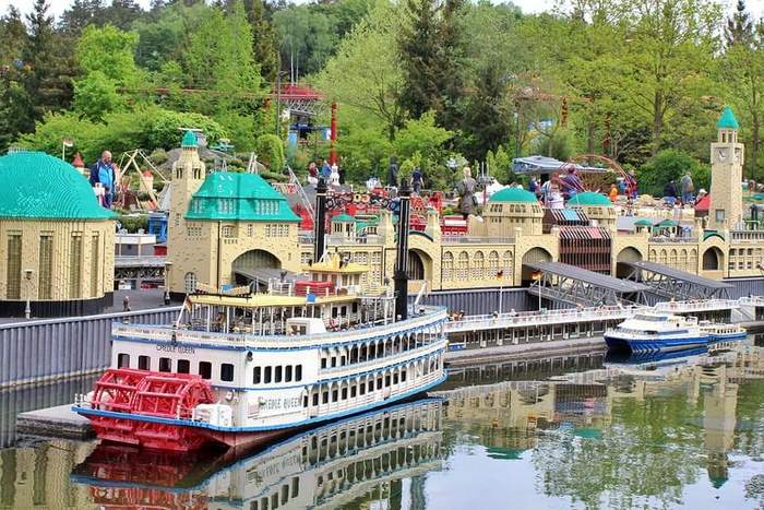 Парк миниатюры оказался для меня самой интересной частью. Миллионы деталек лего и много месяцев работы (или всё таки развлечения 🤷♀️) десятков людей. Миниатюры созданы в масштабе 1÷25. Все инсталляции очень интерактивные — едут машины и плавают корабли, крутятся мельницы и работают подъёмные краны, а невозмутимые игрушечные человечки занимаются своими делами. В каждом городе своё характерное звуковое сопровождение. В парке представлены, главным образом, немецкие достопримечательности, а также Нидерланды, Швейцария и итальянская Венеция.