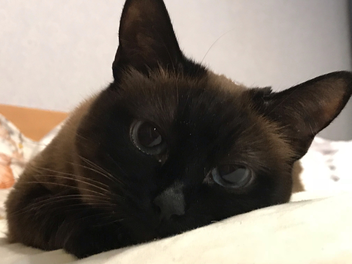 После десятого дня рождения кошки возраст начал брать своё. Обнаружили опухоль, которую успели вовремя удалить; начались проблемы с почками.