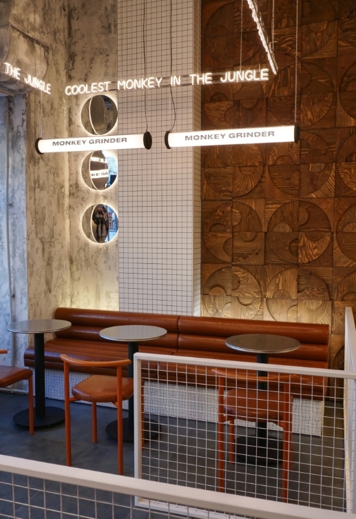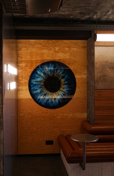 Проработка деталей заслушивается отдельного внимания: каждое решение — от расположения столиков и освещения до выбора декоративных элементов — продумано до мелочей. Так, светильники с металлическими корпусами и деревянными элементами создают мягкое и уютное освещение, подчеркивая структуру материала и создавая приятную атмосферу. А необычные декоративные элементы – например, большой глаз или деревянные стеновые панно – добавляют уникальности. В результате получился дизайн, который в равной степени радует глаз и вызывает желание уютно устроиться с чашкой кофе, наслаждаясь не только вкусом, но и эстетикой окружающего пространства.