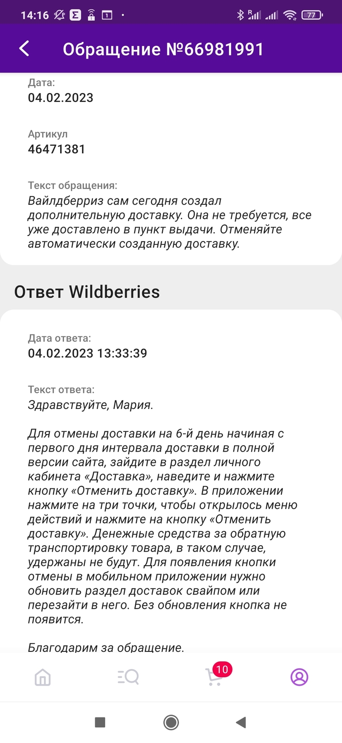 Больше желания писать письма в поддержку Вайлдберриз у меня не было. Я описала ситуацию в чатике Тинькофф и за пару часов мне сделали возврат моих 200р.