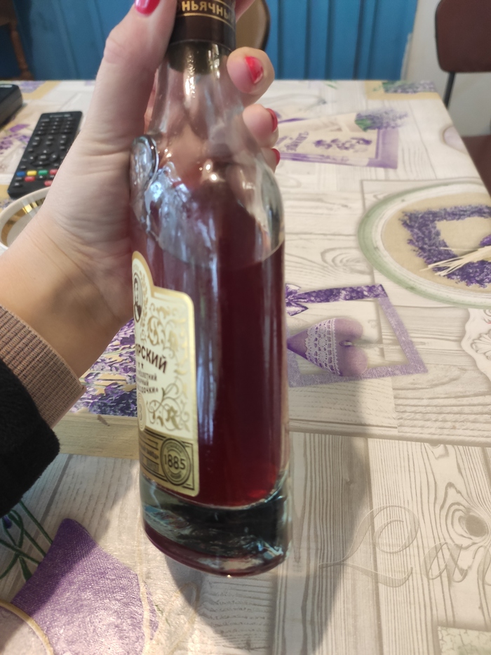 Свекровь сделала наливку из своего самогона и своей клубники.