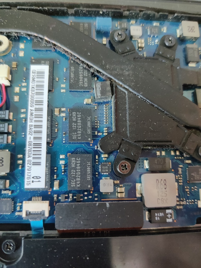 Теоретически видно 2 возможных места крепления м.2 диска и есть один незадействованный неизвестный разъём (маленький, белый, почти в центре). Правее - клавиатура, ещё правее -тачпад. Места возможного крепления:
