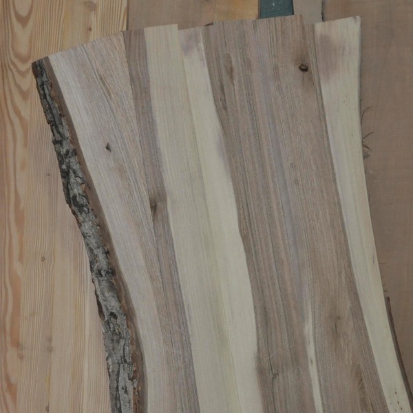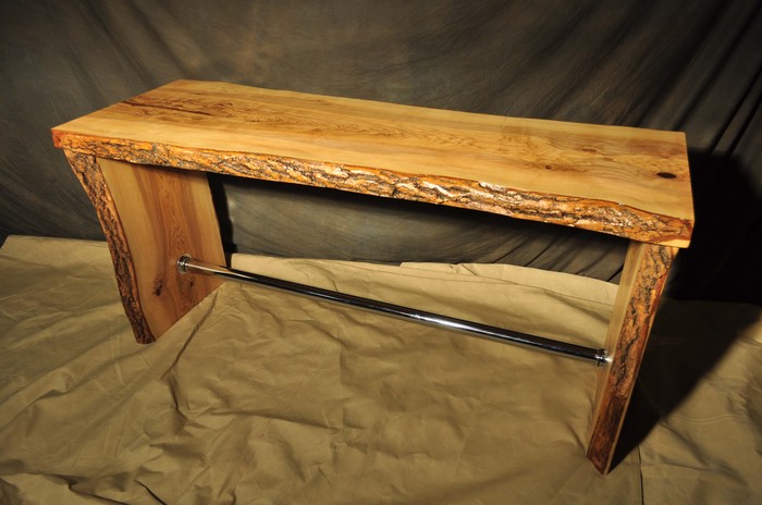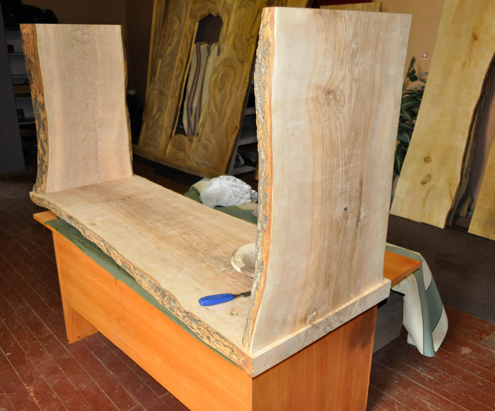Важным моментом является подбор материала для изделия. В нашей работе чаще всего мы используем ценные породы фруктовых деревьев, орех, вишня, груша. Но здесь выбор пал на ясень. Во-первых, это очень твердая древесина и в старину использовался для изготовления оружия. Барная стойка из массивной цельной толстой доски будет выглядеть органично в любом интерьере. Здесь была использована доска – 60 мм, на мой взгляд, не стоит брать меньше 40 мм. Во-вторых, материал много лет сушился в мастерской, что является залогом его устойчивости. И в довершение - это доски одного ствола с красивой, неизменной текстурой. Рисунок древесины ножек идеально сочетается со столешницей.