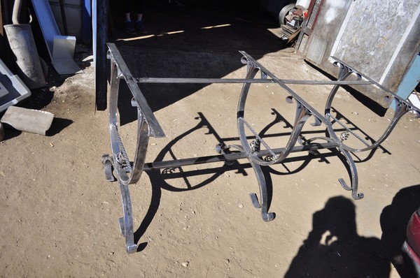 Двойные петли собственного изготовления. Сделано вручную с использованием ушм, ножниц по металлу, надфиля. Труба под столешницей полированная металлическая из фурнитурной лавки.