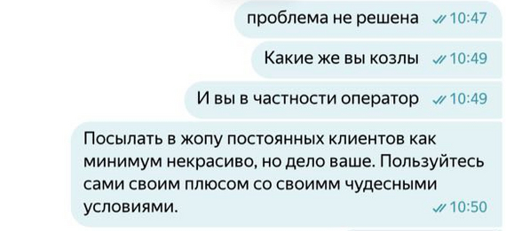 Получаем что? Получаем, конечно же, отписку. И не просто отписку, а "с условиями тарифа вы могли ознакомиться при оформлении тарифа" — глупый пользователь, читать не умеет, всё же написано.