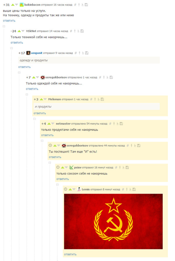 2 amgunit 9 лет назад Союз прокормит #comment_65893105 #comment_65893105 Показать полностью 1 Комментарии на Пикабу Комментарии США СССР Тупость