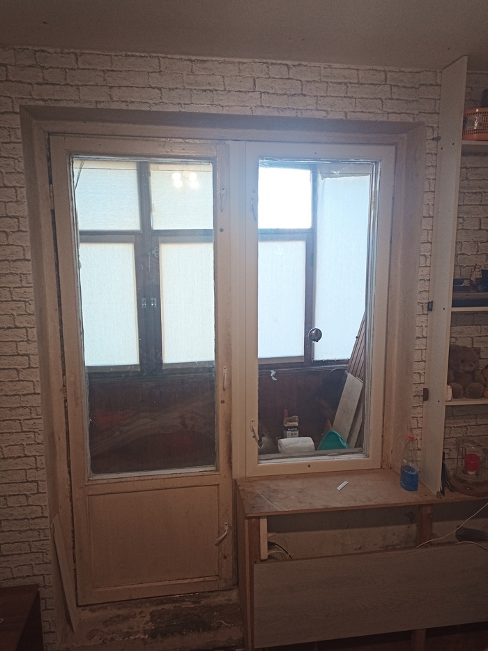 Итак что мы имеем. Деревянный балконный блок- дверь окно от застройщика 65г.в. В целом ровные, с открытием закрытием проблем нет. Внешний вид удручающий. примерно вот так