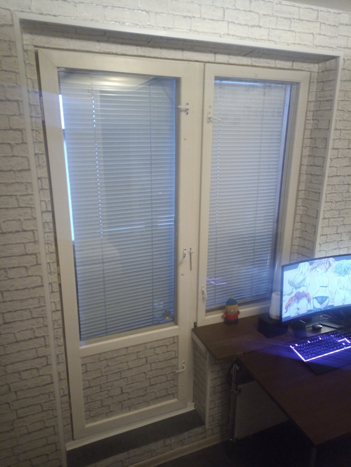 Я это уже сделал. Мне нравиться полностью. Не рассказывайте как правильно. Я эту идею придумал и на коленке воплотил. Такого до меня никто не делал (а если делал то где пруфы, Билли?) поэтому только я понимаю что у меня правильно, а что нет. Если думаете, что проще отдать дядькам 30к и они поставят нормальные ПВХ со стеклопакетом то, вам надо внимательнее читать начало поста. Жалюзи за окном потому что я художник, я так вижу. Нет, не отвалиться через полгода, на кухне окно держится 4й год, эта дверь с окном 2й. И предпосылок на отвал нет.