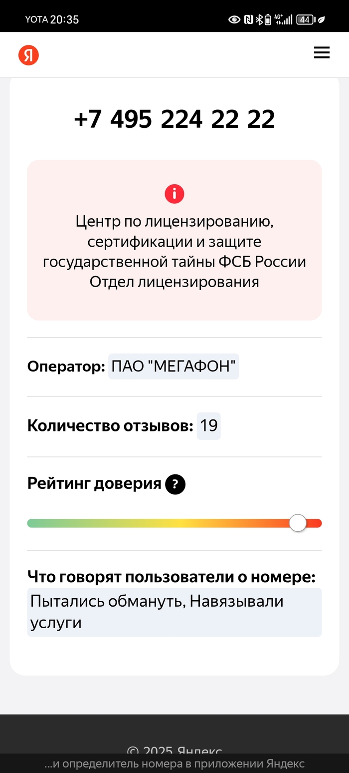 Да и просто при поиске по номеру отображается сайт ФСБ.