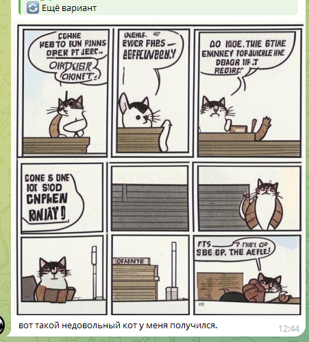 Зашел в один из чатов, вбил запрос " нарисуй пожалуйста недовольного кота поздравляющего с 1 декабря в стиле комикса"