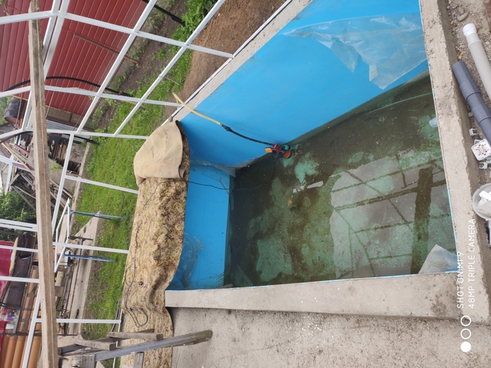 Так же было принято решение закрыть бассейн навесом от грязи, мусора, листьев и тд.